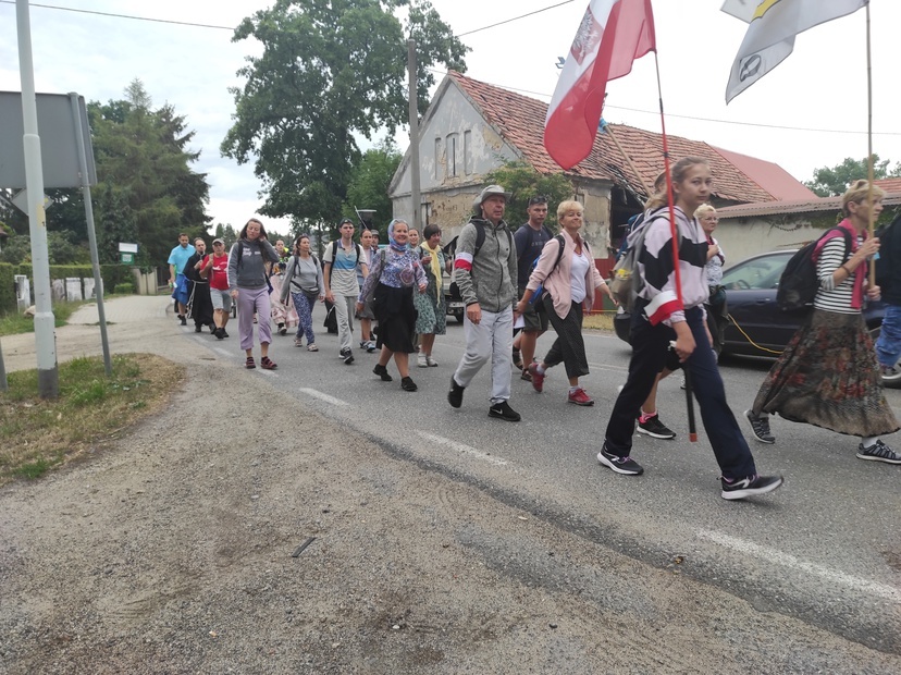 Trzeci dzień pielgrzymowania rozpoczął się od mocnego odcinka. Pielgrzymi musieli bowiem przejść z Tyńca Małego do Żórawiny a jest to odległość aż 10 km. Na szczęście pierwszy odpoczynek był powiązany z Eucharystią. To oznacza, że postój nie trwał tutaj jedynie 40 minut a ponad 2 godziny.